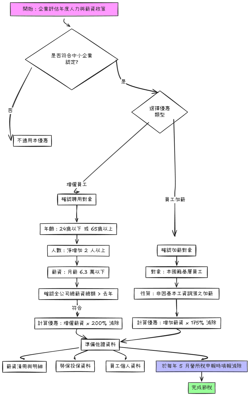 在用人成本逐年墊高的壓力下,中小企業主應善用政府的「加人加薪」租稅優惠,透過合法的抵稅政策,將增加的人事成本轉化為節稅效益 。
